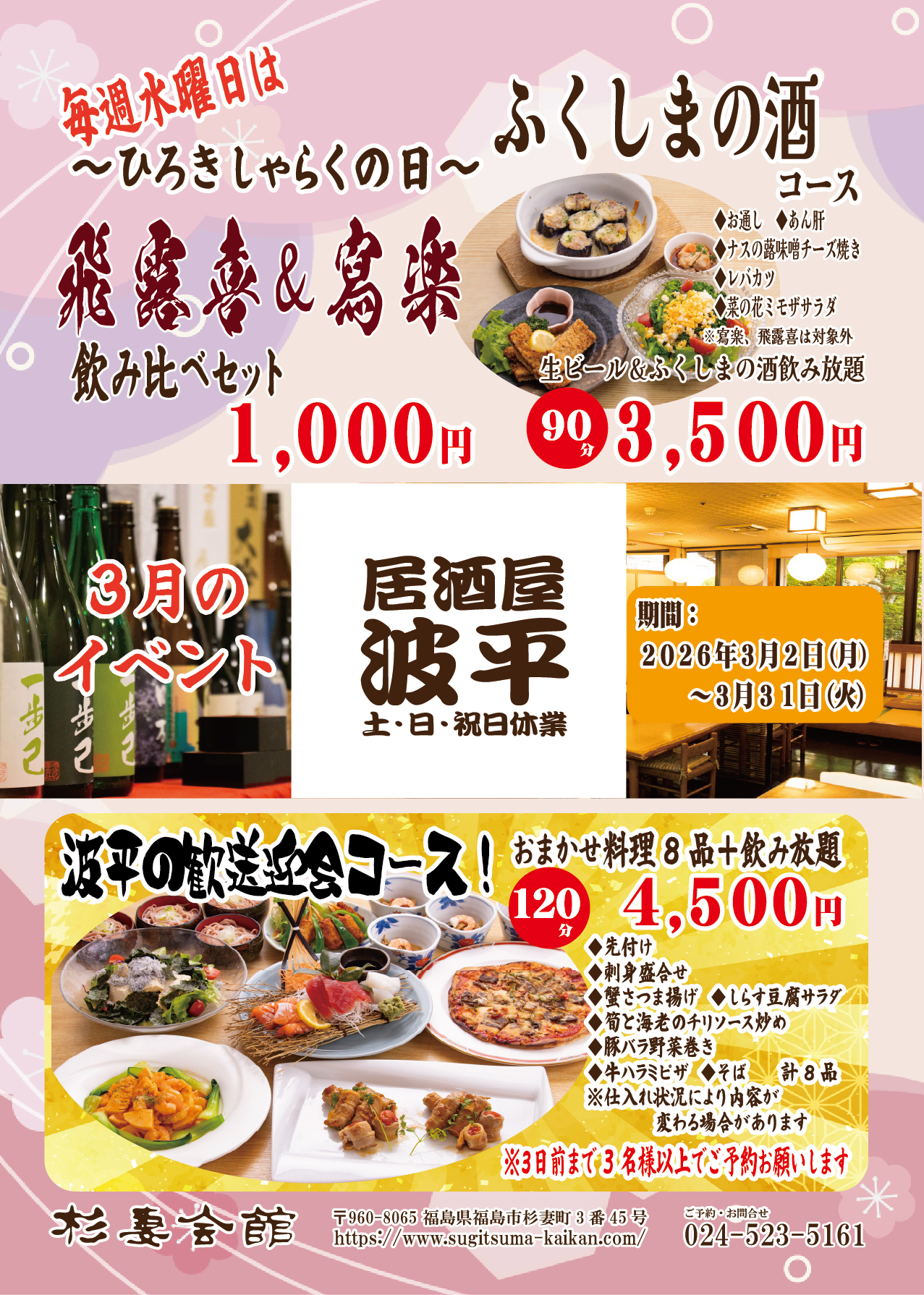 地下1F「波平」では心あたたまる郷土料理・地酒を用意いたしております。